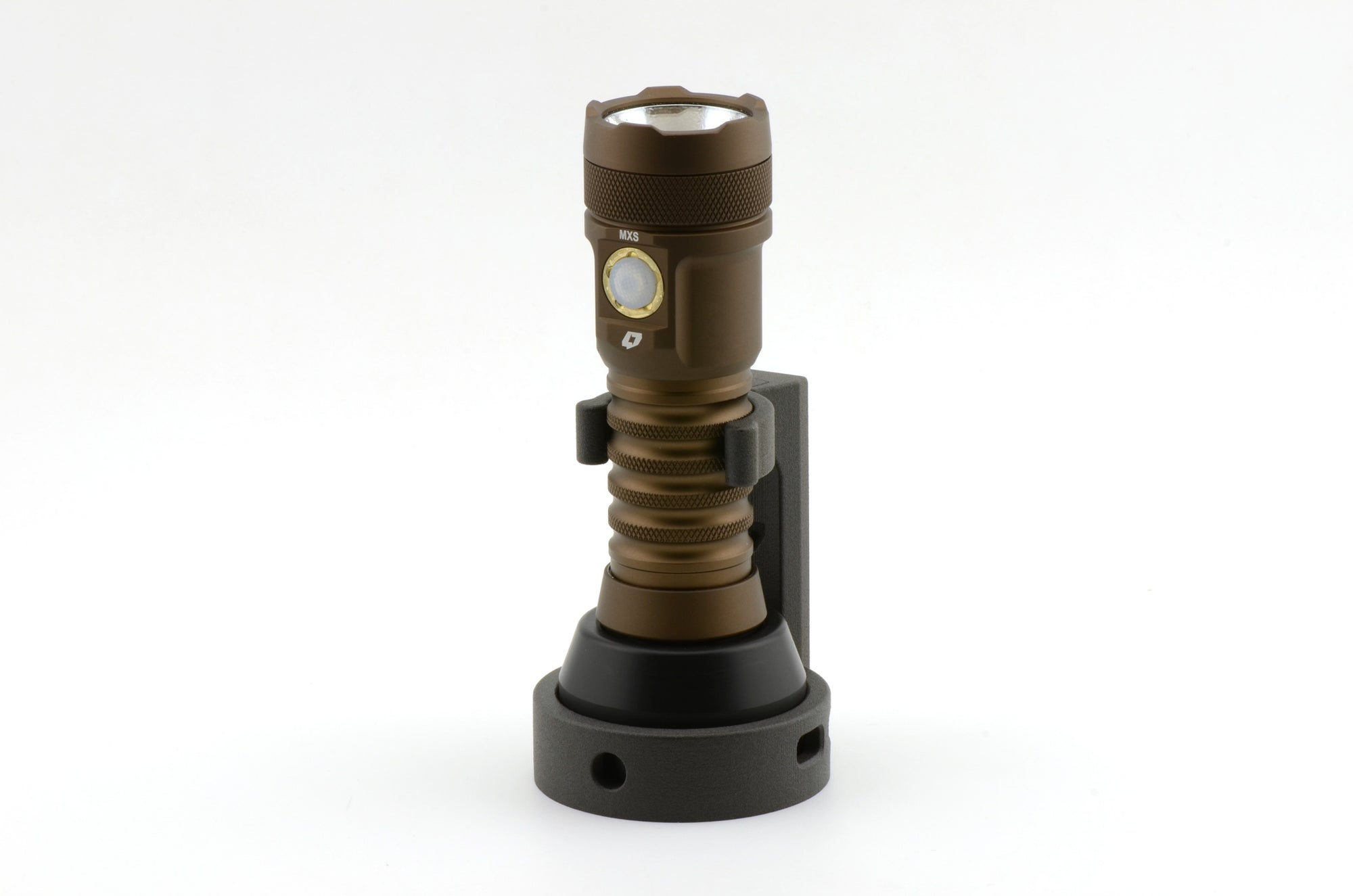 The over-center arms keep the light secure with just the right amount of force. When inserted, the arms allow the light to slide downwards with the force of gravity, making sure the light remains in contact with the inductive charging base.