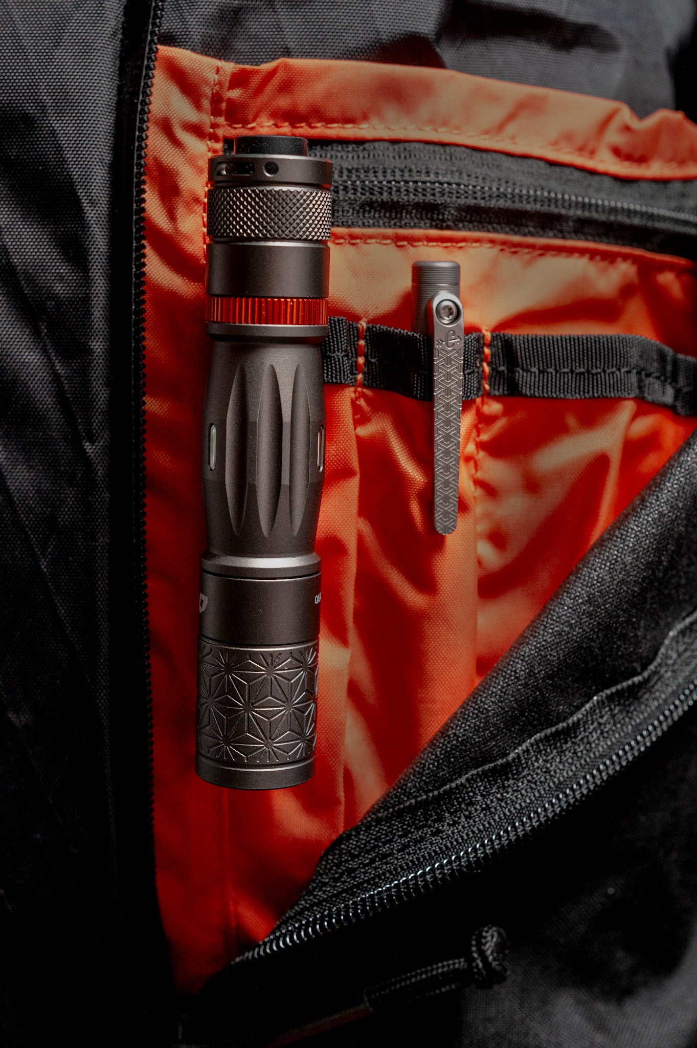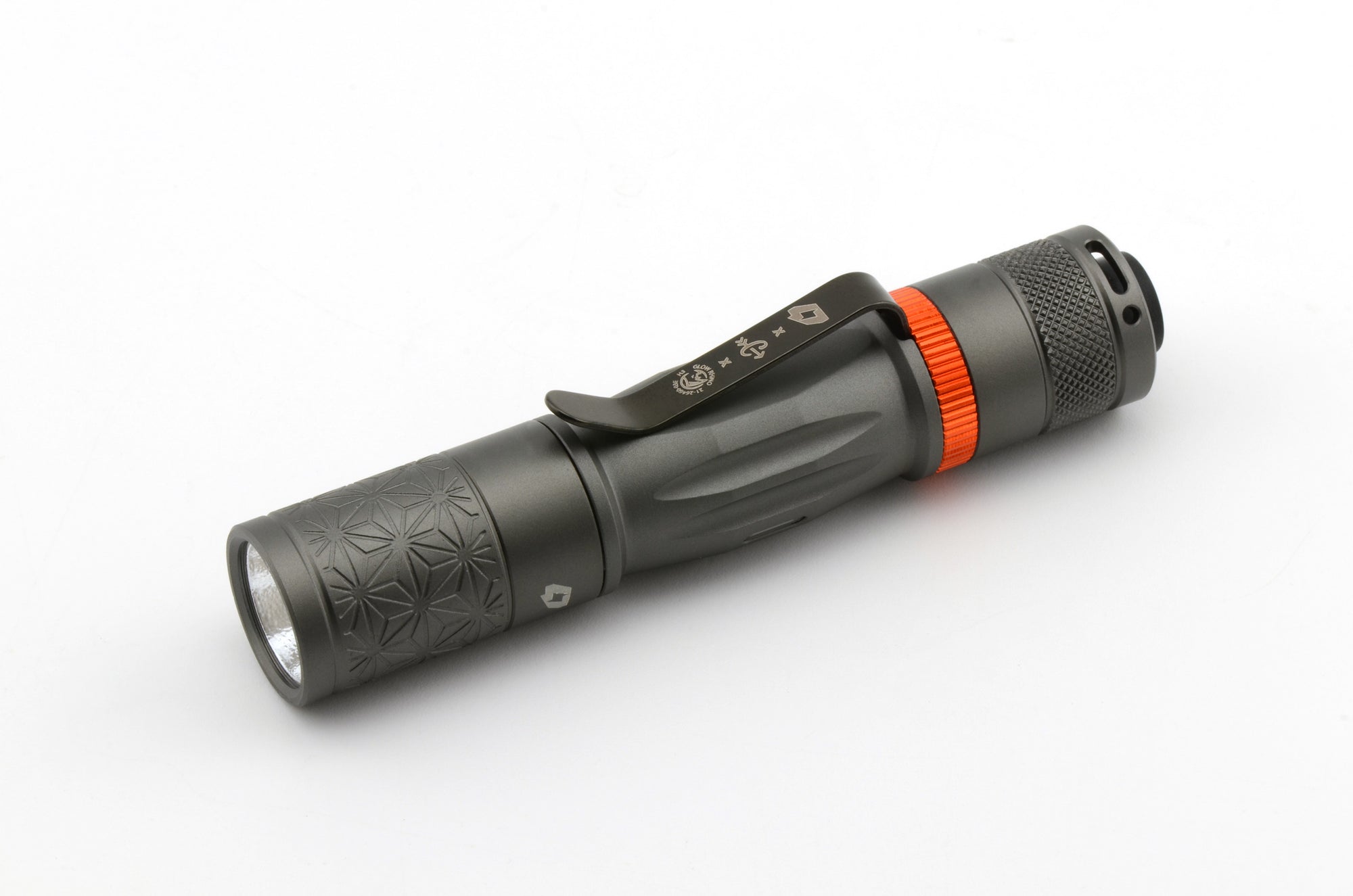 A redesigned center section is larger in diameter than previous Quarks, but keeps the same diameter overall. This change has the added benefit of improving grip. Carryology's signature pattern is CNC machined (not laser engraved) into the head and features a Storm Grey anodize with and orange highlight on the clip retaining ring. Is this my most favorite Quark ever? It most certainly is!
